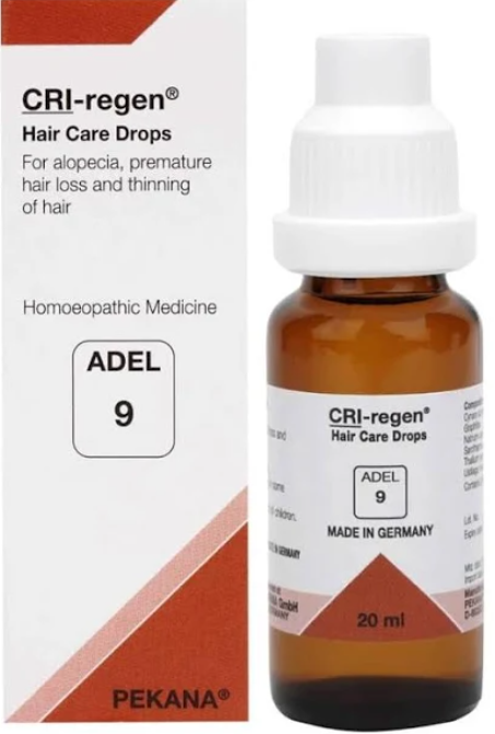 ADEL-9 (CRI-regen) drops are a homeopathic liquid formula traditionally used to support hair health: