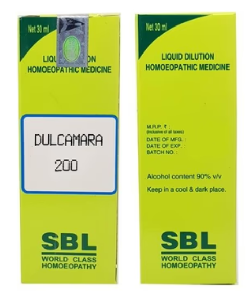 Dulcamara 200C (30ml) is a widely used homeopathic dilution primarily indicated for ailments triggered or worsened by cold and damp weather. It is commonly used for respiratory issues, skin conditions, and joint stiffness.
