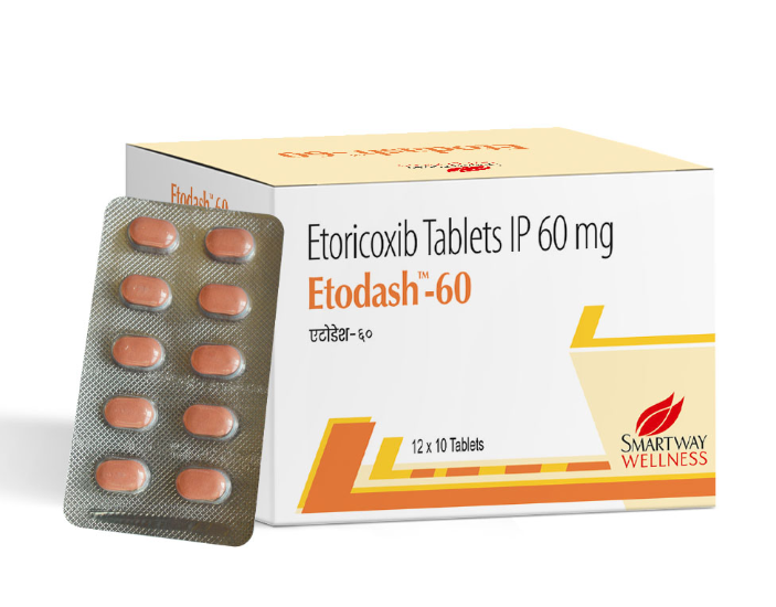 The product Etodash 60 is a high-quality oral solid dosage form manufactured and marketed by Smart Way. Smart Way is recognized for its commitment to providing effective, accessible, and reliable healthcare solutions that meet stringent quality and safety standards. Etodash 60 is formulated using premium grade active ingredients to ensure optimal therapeutic efficacy and patient compliance.