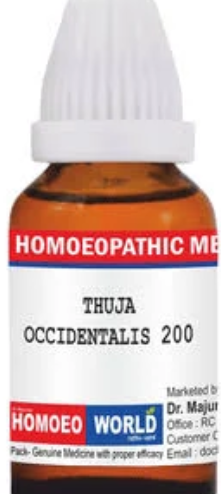 Thuja Occidentalis is a homeopathic remedy made from the plant Thuja (Arbor Vitae). In homeopathic practice, the 200 CH potency refers to a medium-to-high dilution profile often chosen when the symptom picture (like skin growths, warts, chronic conditions, etc.) matches the Thuja “constitution